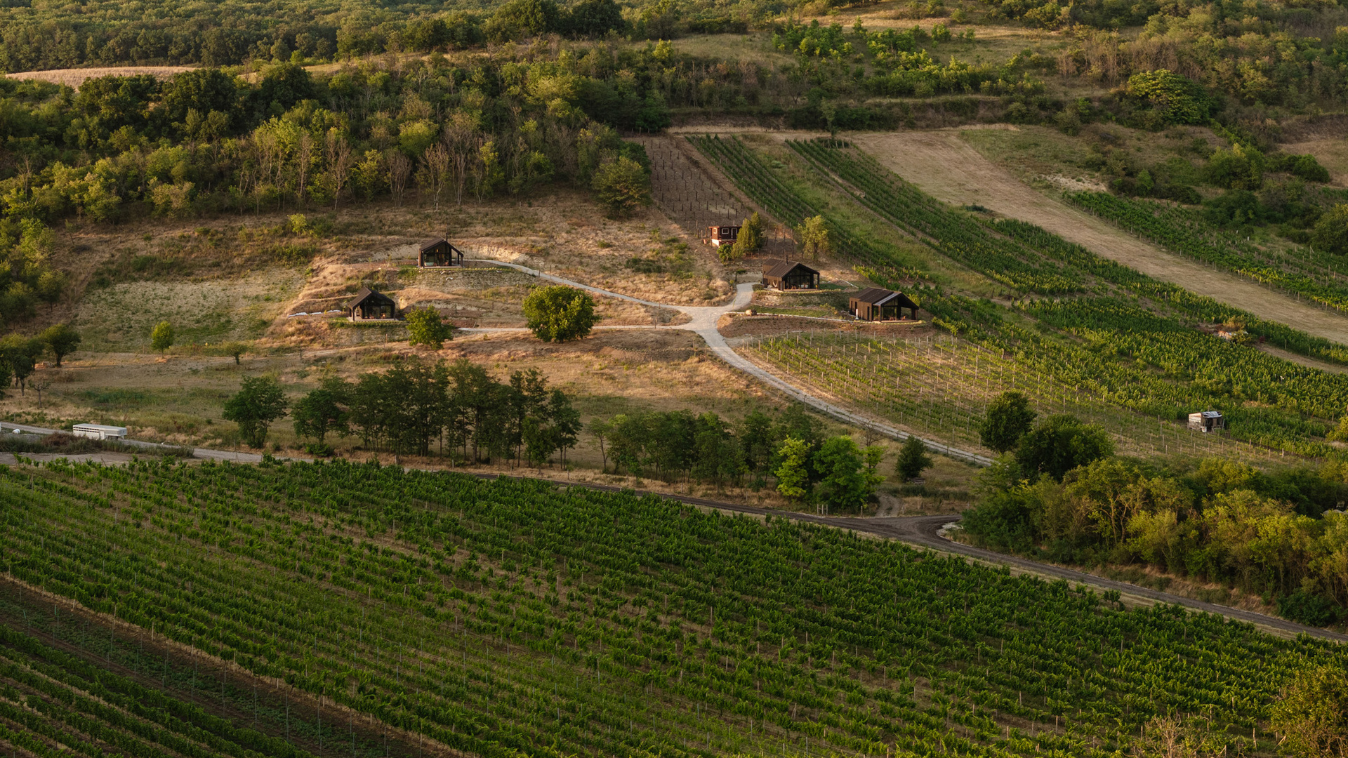 Romantiku prostredia umocňujú vinice produkujúce prvotriedne hrozno, ďalší produkt farmy, v ktorých sa nachádza štýlové ubytovanie v chatách.